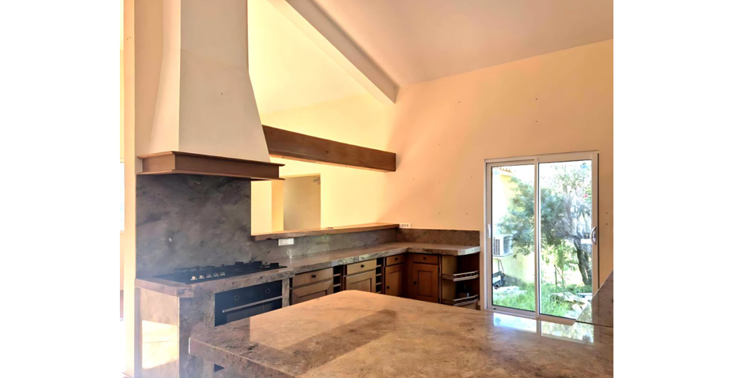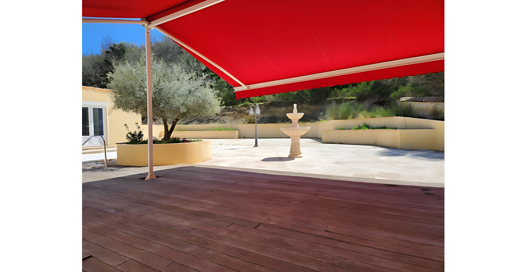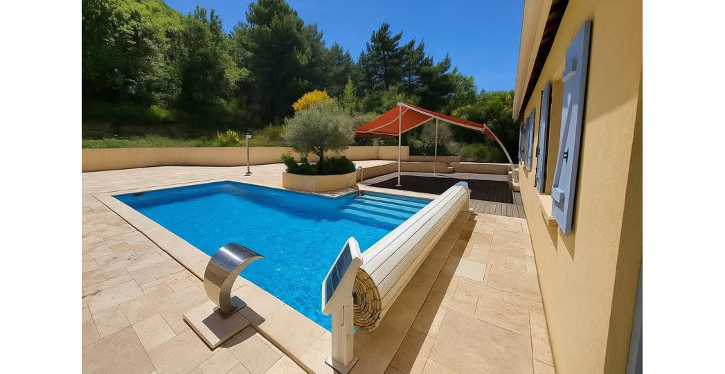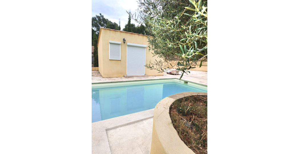 | Terrasse en travertin avec une partie solarium en bois (belle orientation sud) | 200 m² |